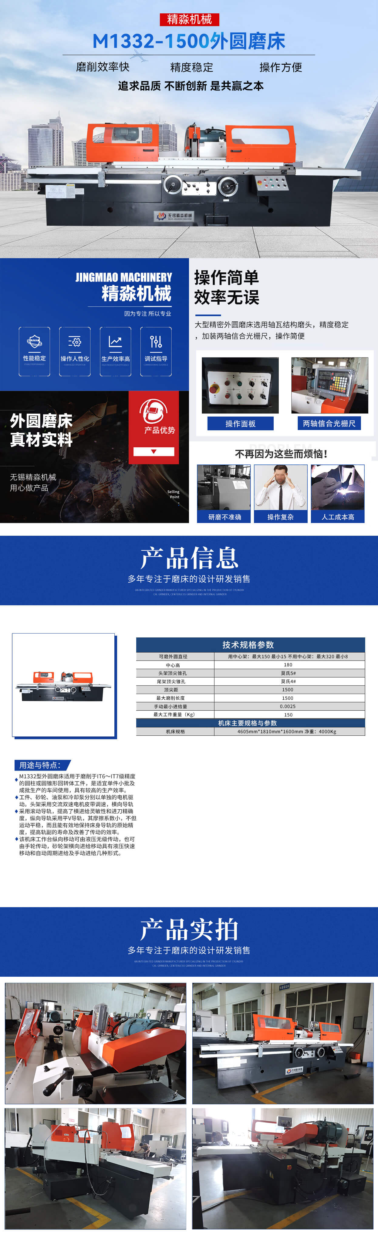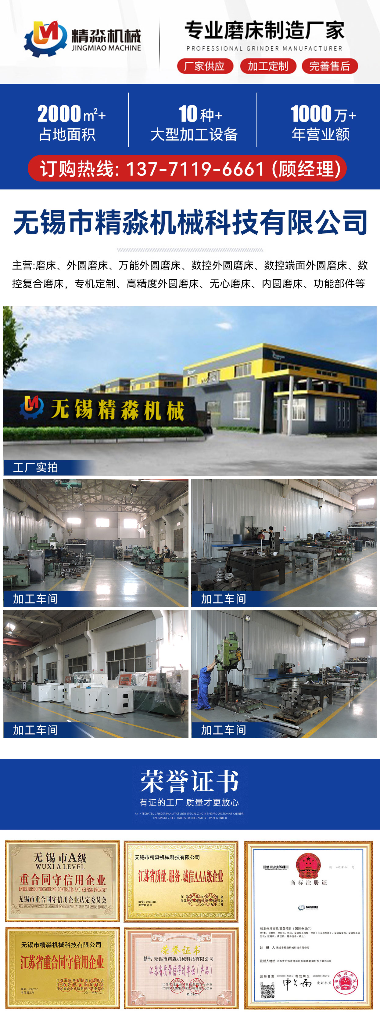 歡迎您訪問無錫市精淼機(jī)械科技有限公司官網(wǎng)!本公司主要產(chǎn)品有:磨床,外圓磨床,萬能外圓磨床,數(shù)控外圓磨床,數(shù)控端面外圓磨床,數(shù)控復(fù)合磨床,專機(jī)定制,高精度外圓磨床 !