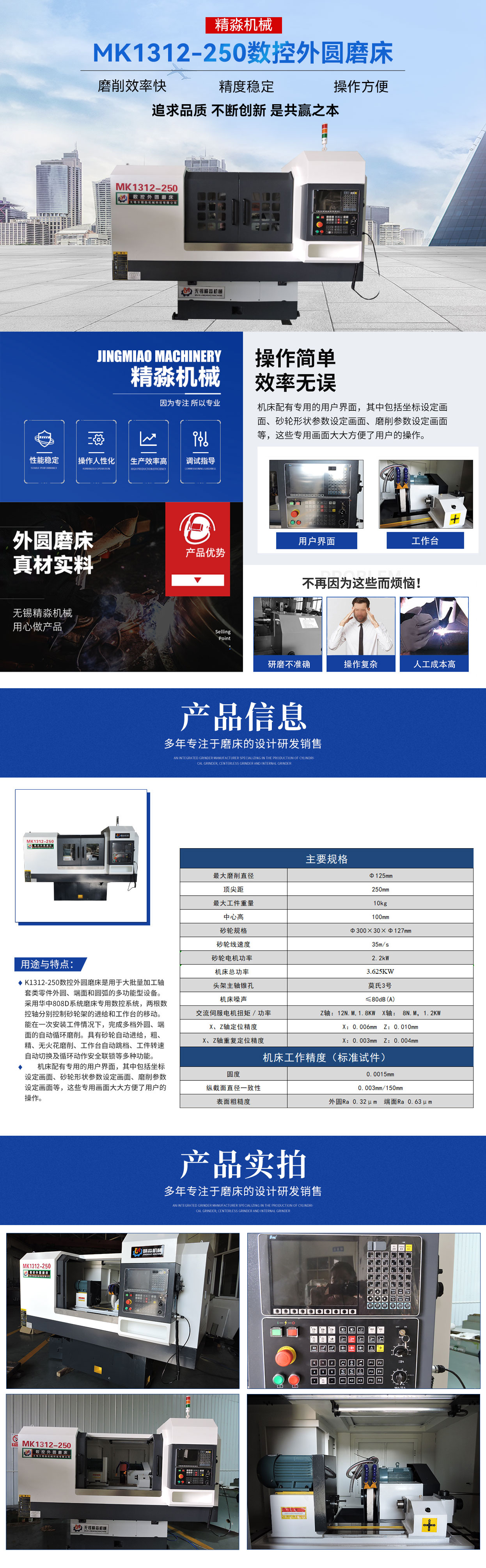 歡迎您訪問無錫市精淼機(jī)械科技有限公司官網(wǎng)!本公司主要產(chǎn)品有:磨床,外圓磨床,萬能外圓磨床,數(shù)控外圓磨床,數(shù)控端面外圓磨床,數(shù)控復(fù)合磨床,專機(jī)定制,高精度外圓磨床 !